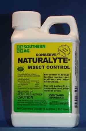 Repackage of Spinosad 0.5% SC that is listed with OMRI (Organic Materials Review Institute) ? Controls caterpillars, thrips, leafminers, beetles & flies on many ornamentals, vegetables & fruits ? Controls caterpillars, fleas & fire ants in lawns CONTAINS: 0.5% Spinosad USE ON: Vegetables, ornamentals, and fruit trees. CONTROLS: Fire ants, caterpillars, worms, leafminers, leafrollers, thrips, gall midges, leaf feeding beetles, fruit flies, colorado potato beetle and corn earworms. RATE: spray at 2 oz. per gallon of spray or drench at 2 oz. per gallon on Fire Ant mounds APPLICATION:: Mix with water, use as a thorough cover spray.